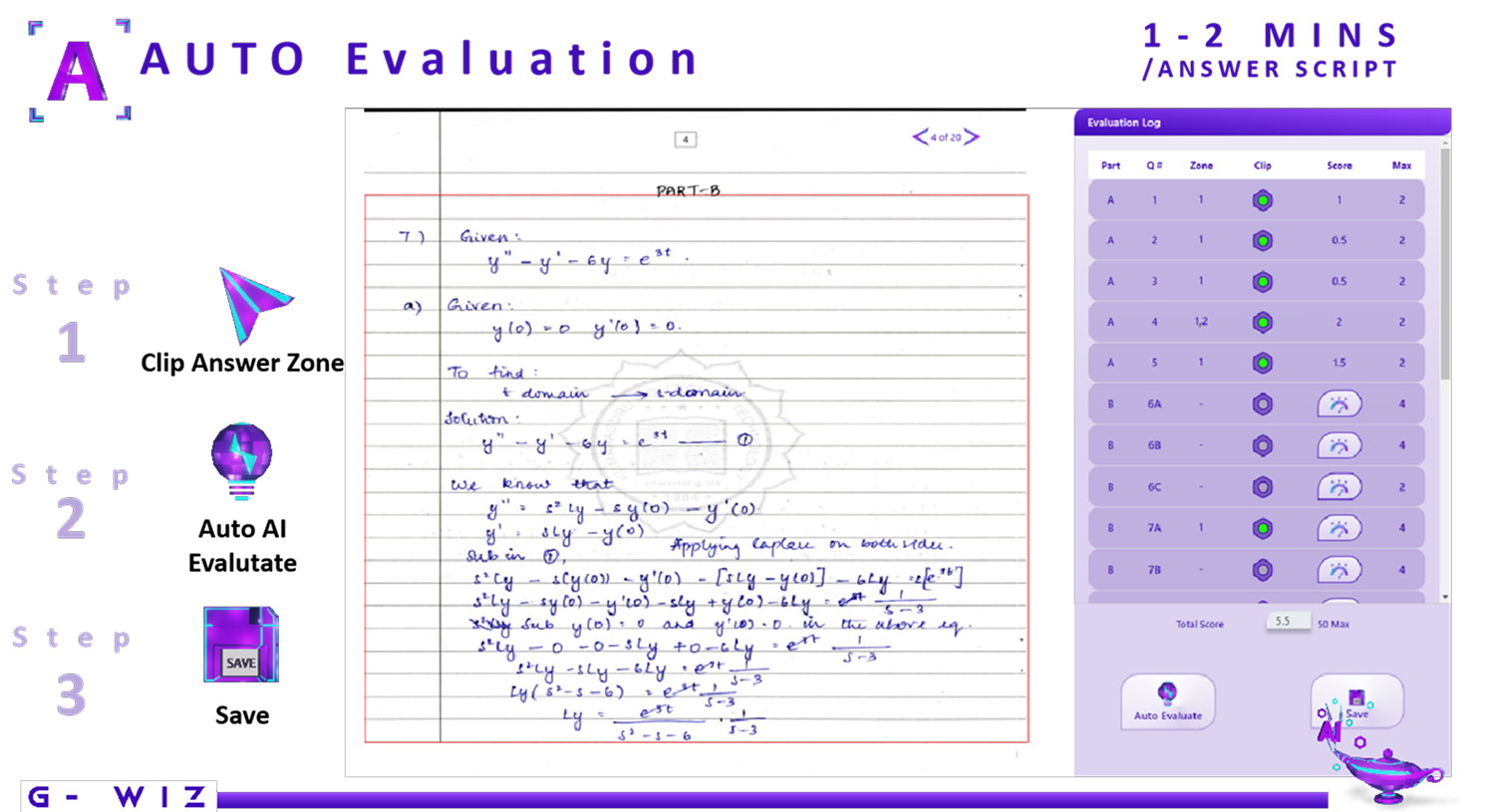 G-Wiz Exam Management System (G-Wiz EMS) is an AI-powered platform designed to streamline question paper generation and answer script evaluation for higher education institutions offering professional courses worldwide. By leveraging advanced NLP and machine learning, G-Wiz EMS ensures adaptive assessments, automated grading, and deep learning analytics to enhance academic rigor and efficiency. Its scalable SaaS model integrates seamlessly with diverse curricula, empowering universities and colleges to optimize assessment workflows while maintaining the highest standards of integrity and fairness.